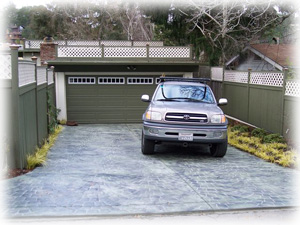 Stamped concrete transforms this Mill-Valley, CA driveway into visual art.
